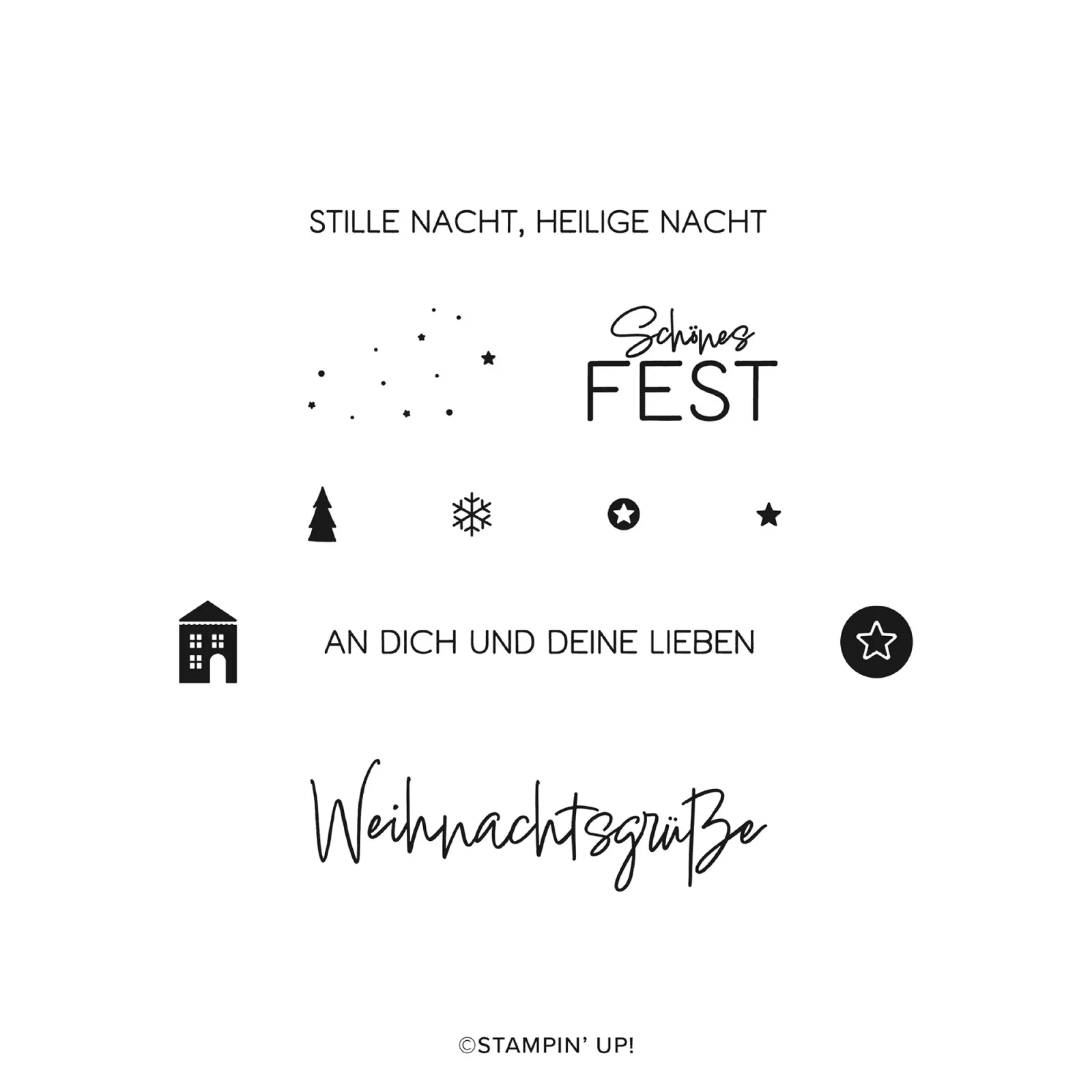 Das so beliebte Kreativset „Schöne Stille Nacht“ von Stampin‘ Up! ist wieder bestellbar!! Für alle die nicht wissen was ich meine, hier noch ein paar Bilder. Es ist alles enthalten um 9 Karte zu basteln. Mit dabei ein ganz niedliches Stempelset was man wunderbar für andere weihnachtliche Projekte nutzen kann.