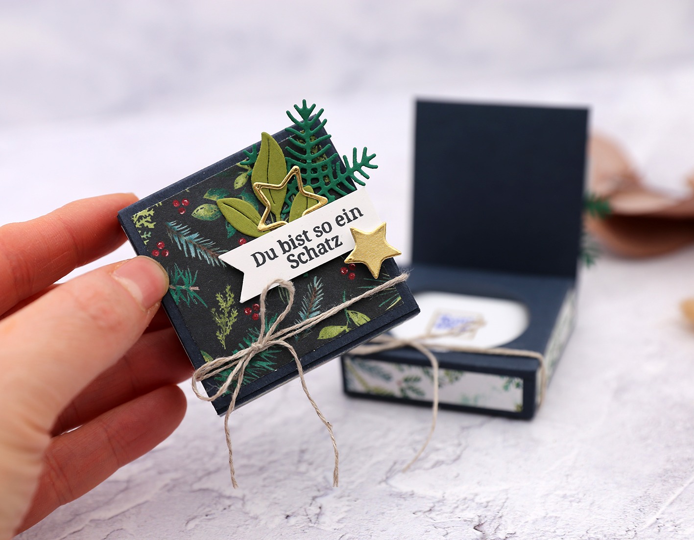 Herzlich Willkommen zu „8 Tage Weihnachten“. Heute starte ich mit 8 Tagen weihnachtlichen Input. Ich hoffe ich kann Dich zum kreativ sein motivieren und es ist die ein oder andere Idee für dich dabei. 🙂 Ich habe mir gedacht das ich nach 12 Jahre YouTube mein aller erstes Video nochmal aufleben lassen kann. Daher möchte ich dir heute die Idee von damals zeigen und sie in meinem heutigen Stil basteln. Verwendet habe ich das tolle Designerpapier „Tannen & Flocken“.