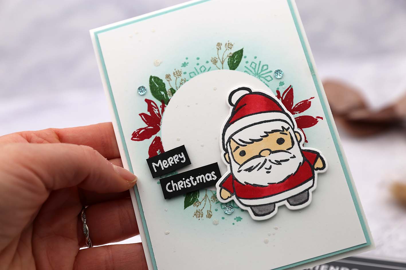 Heute möchte ich Euch die letzte Weihnachtskarte für dieses Jahr zeigen. Sie hat einen besonderen Hintergrund, der aber gaaanz einfach ist. Schaut gerne im Video wie ich das ganze gemacht habe. Verwendet habe ich unter anderem das Stempelset aus dem Stampin‘ Up! Adventskalender und das Produktpaket „Festive Friends“. Beides ist noch bestellbar!