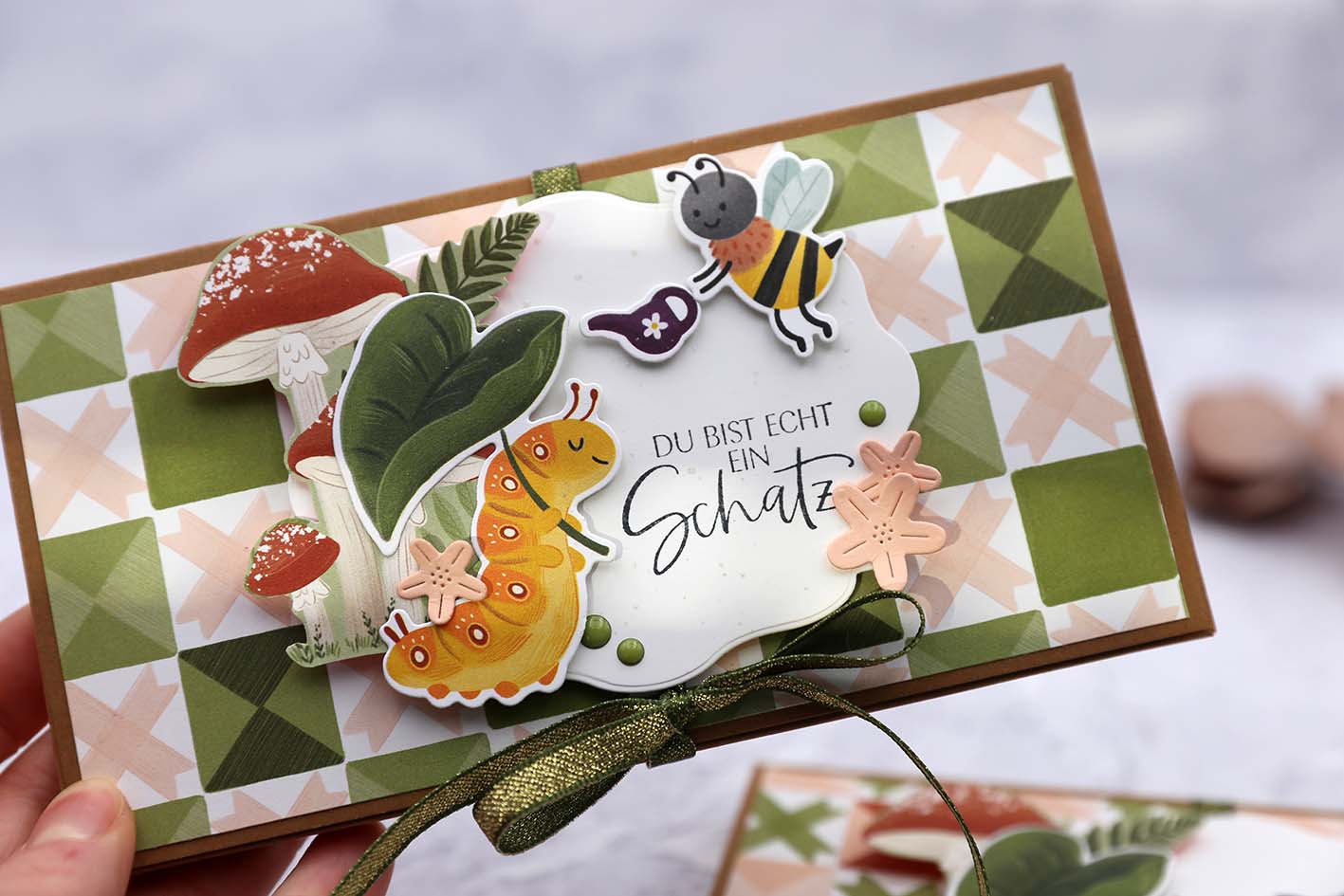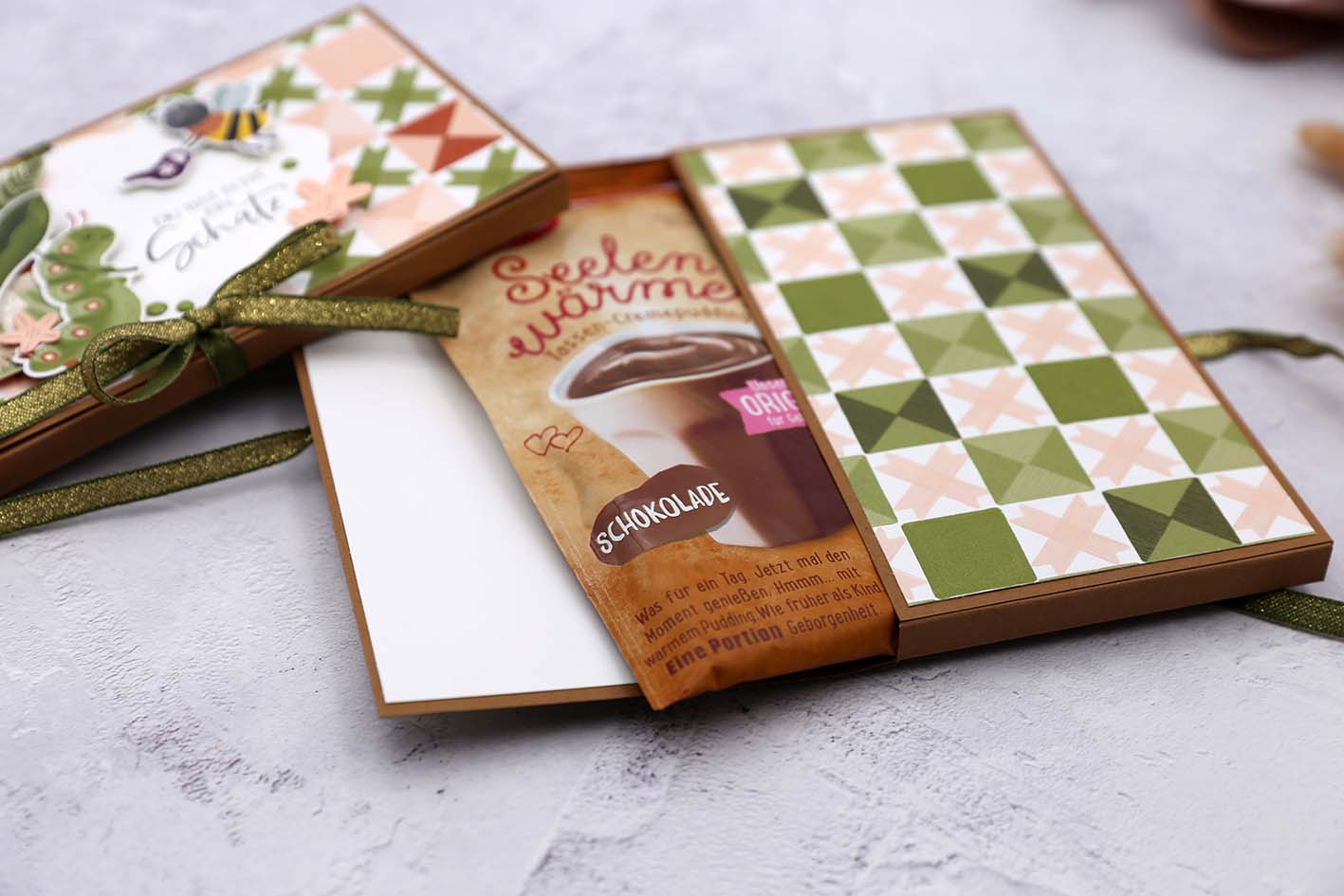 Heute möchte ich dir eine Verpackung für einen Tassenpudding zeigen. Die Idee habe ich von meiner Kundin Isabel, denn sie hat mir so eine niedliche Verpackung geschickt. 🙂 Für die Deko habe ich die neue Käfer-Kollektion „Käfer & CO.“ von Stampin‘ Up! verwendet.