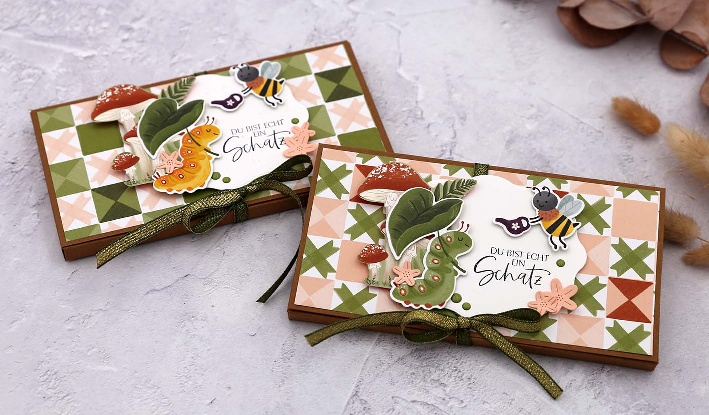 Heute möchte ich dir eine Verpackung für einen Tassenpudding zeigen. Die Idee habe ich von meiner Kundin Isabel, denn sie hat mir so eine niedliche Verpackung geschickt. 🙂 Für die Deko habe ich die neue Käfer-Kollektion „Käfer & CO.“ von Stampin‘ Up! verwendet.