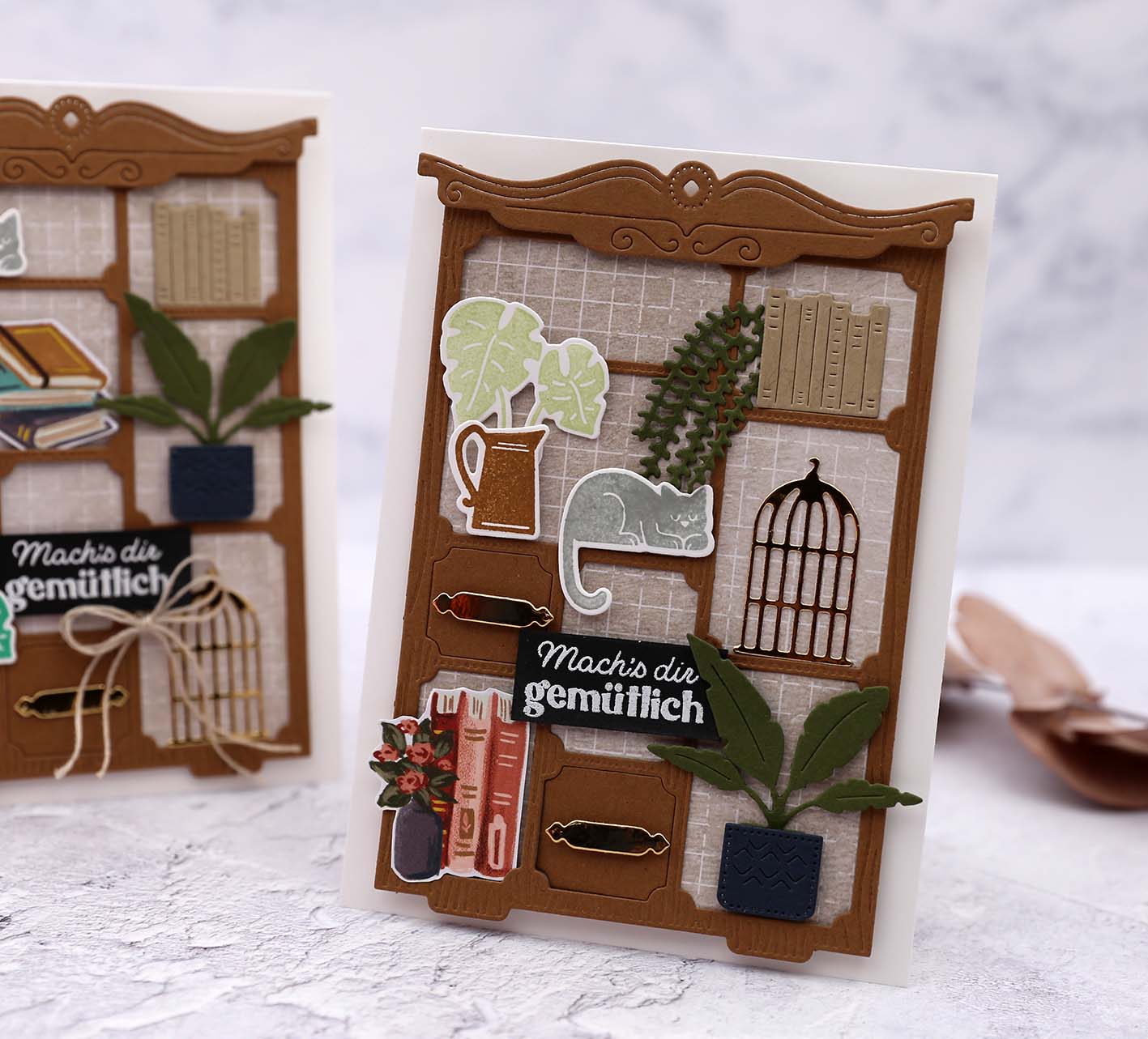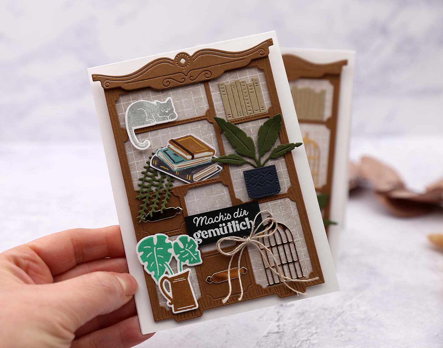 Bevor uns das süße Stampin‘ Up! Produktpaket „Gemütliches Zuhause“ schon wieder verlässt, wollte ich es Euch noch unbedingt vorstellen. Diese Schrank-Stanzform zu bestücken hat einfach spaß gemacht. Und das Ergebnis ist eine ganz besondere Karte. Die Stempel und auch die Stanzformen sind gerade im Ausverkauf und einzeln auch reduziert. Schaut gerne mal in der Kategorie „Letzte Chance“ im Onlineshop vorbei.