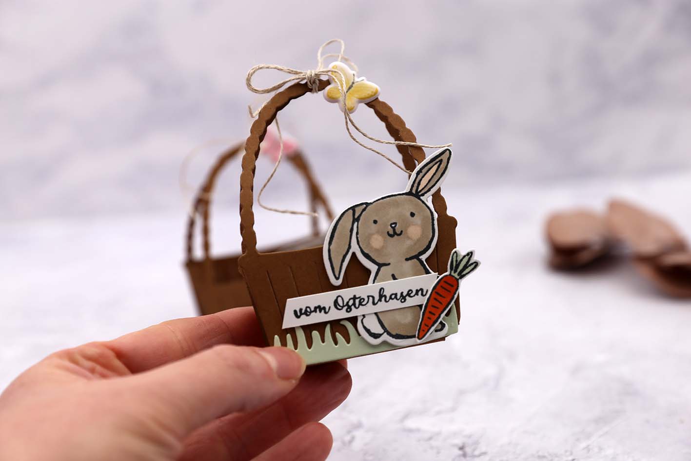 Ha, ich hab den Beitrag vom letzten Freitagsvideo vergessen. Das geht natürlich nicht!! Daher hier nochmal der Hinweiß auf das Video von letzter Woche. Ich habe mir ein Osterkörbchen aus den neuen Stanzformen „Schönes Osternest“ einfallen lassen. Schau gerne auf YouTube vorbei!
